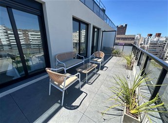 POCITOS Venta Apartamento Penthouse 2 Dormitorios y 2 Baños a estrenar a 1 cuadra y media de la Rambla, Terraza de 30m2, Garaje para 1 auto, Barbacoa con parrillero, Bajos Gastos comunes