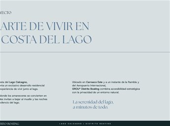 LAGOS DE CARRASCO, GROU Proyecto DISTRITO BOATING sobre Lago Calcagno, en un entorno de naturaleza, a pasos de centros comerciales: Geant, Macromercado y 5 minutos de Carrasco Propuestas arquitectónicas innovadoras a la par de una excelente calidad constructiva y finas terminaciones Todas las unidades cuentan con amplios ventanales, vistas despejadas al lago, amplias terrazas y terraza lavadero. El proyecto general comprende el desarrollo de 3 Torres, con unidades de 1, 2 y 3 Dormitorios. AMENITIES: * Barbacoa equipada con con parrillero y vistas despejadas al lago. * Area de solarium * Gimnasio equipado * Cowork * Laundry EL PROYECTO SE CONSTRUYE BAJO LA LEY 18.795 CON BENEFICIOS FISCALES EXONERACIONES: * IVA en la primera compra * ITP - Impuesto a las transmisiones patrimoniales en la 1er compra (2% sobre el valor de Catastro) * Impuesto al Patrimonio por 10 años * Impuesto a la renta en los alquileres IRPF/IRAE por 10 años POR CONSULTAS Y COORDINACION DE VISITAS FAVOR ENVIAR MENSAJE VIA WHATSAPP O LLAMAR AL CELULAR DE CONTACTO-