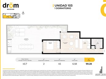 Proyecto DROM BULEVAR, MUY BUENA UBICACION. Entrega estimada Junio de 2027 Propuestas arquitectónicas innovadoras a la par de una excelente calidad constructiva y finas terminaciones. Las unidades se destacan por su amplitud, sus amplios ventanales, su luminosidad, vistas despejadas, amplias terrazas. Cocina integrada con buena capacidad de muebles aéreos y bajo mesada. Dormitorio con placard CALEFACCION: Previsión para splits de aire acondicionado AMENITIES: * Amplia Barbacoa en azotea con parrillero * Gimnasio equipado TIPOLOGIAS: - 1 Dormitorio desde USD 127.480 - 2 Dormitorios desde USD 171.500 COCHERAS Descubiertas: USD CONSULTAR COCHERAS Cubiertas: USD CONSULTAR Gastos de Ocupación: 4% (Conexiones, alojamiento, planos de mensura y reglamento de copropiedad) Comisión Inmobiliaria: 3%+IVA FORMA DE PAGO: Reserva: 10% - Promesa CV: 30% - Durante la Obra: 50% - Entrega: 10% SALDO EN CUOTAS SIN INTERESES HASTA LA OCUPACION POR CONSULTAS Y COORDINACIÓN DE VISITAS FAVOR ENVIAR MENSAJE VIA WHATSAPP O LLAMAR AL CELULAR DE CONTACTO.