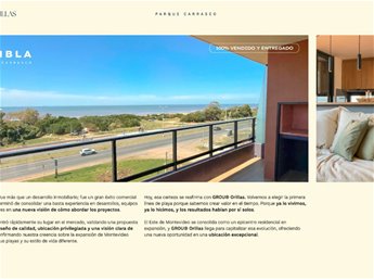PARQUE CARRASCO Proyecto GROU Orillas, sobre primera línea de la Rambla frente a la playa, en un entorno de naturaleza, a pasos de centros comerciales: Geant, Macromercado y a 5 minutos de Carrasco, Entrega: Noviembre 2027 Propuestas arquitectónicas innovadoras a la par de una excelente calidad constructiva y finas terminaciones Todas las unidades cuentan con amplios ventanales, vistas despejadas al lago, amplias terrazas y terraza lavadero. NOTA: Algunas de las fotos corresponden a una unidad Showroom del último edificio culminado de la misma Desarrolladora, para que puedan apreciar l calidad de terminaciones- El proyecto general comprende el desarrollo de 3 Torres, con unidades de 1, 2 y 3 Dormitorios. AMENITIES: * Barbacoa equipada con con parrillero y vistas despejadas al lago. * Area de solarium * Gimnasio equipado * Cowork * Laundry EL PROYECTO SE CONSTRUYE BAJO LA LEY 18.795 CON BENEFICIOS FISCALES EXONERACIONES: * IVA en la primera compra * ITP - Impuesto a las transmisiones patrimoniales en la 1er compra (2% sobre el valor de Catastro) * Impuesto al Patrimonio por 10 años * Impuesto a la renta en los alquileres IRPF/IRAE por 10 años POR CONSULTAS Y COORDINACION DE VISITAS FAVOR ENVIAR MENSAJE VIA WHATSAPP O LLAMAR AL CELULAR DE CONTACTO-