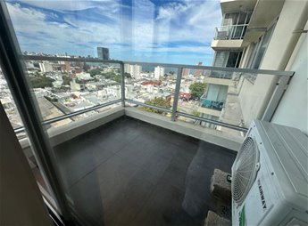CENTRO Alquiler magnífico Apartamento de 1 Dormitorio Piso 8 con terraza, vistas despejadas, amplio Living comedor, muy luminoso, AMENITIES: 2 Barbacoas con parrillero, Laundry