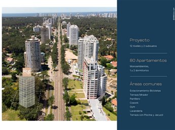 PUNTA DEL ESTE - PROYECTO ERRE 16, MUY BUENA UBICACION SOBRE AV. ROOSEVELT, PARADA 16, A 10 CUADRAS DE PLAYA MANSA, 5KM DE LA PENINSULA, EN EL CERCANIA DE PUNTA SHOPPING, SANATORIO CANTEGRIL, COLEGIOS, UNIVERSIDADES Y TODOS LOS SERVICIOS EXCELENTES AMENITIES Y UNIDADES CON VISUALES UNICAS DE PUNTA DEL ESTE / Entrega de unidades: Diciembre 2027 Propuestas arquitectónicas innovadoras a la par de una excelente calidad constructiva y finas terminaciones Las unidades se destacan por la amplitud de sus ambientes, amplios ventanales, terrazas, vistas despejadas- Inmejorable oportunidad de inversión ya sea como residencia temporal o permanente! TIPOLOGIAS: Lofts, 1 y 2 Dormitorios- Las unidades se entregan ya equipadas con splits de aire acondicionado, horno empotrado, anafe, campana, muebles aéreos y bajo mesada- FORMA DE PAGO: 10% Reserva 20% Compromiso 20% en Cuotas durante la Obra 50% con la ocupación al contado o en cuotas post ocupación AMENITIES: * Piscina exterior y Jacuzzi * Barbacoa con Parrillero * Cowork * Laundry * Bike parking POR CONSULTAS Y COORDINACIÓN DE VISITAS FAVOR ENVIAR MENSAJE VIA WHATSAPP O LLAMAR AL CELULAR DE CONTACTO